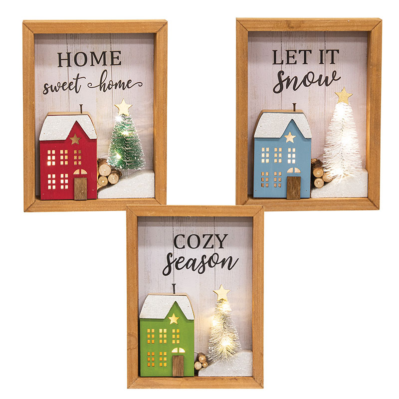 Lighted Winter Village Sign - 3 Asstd